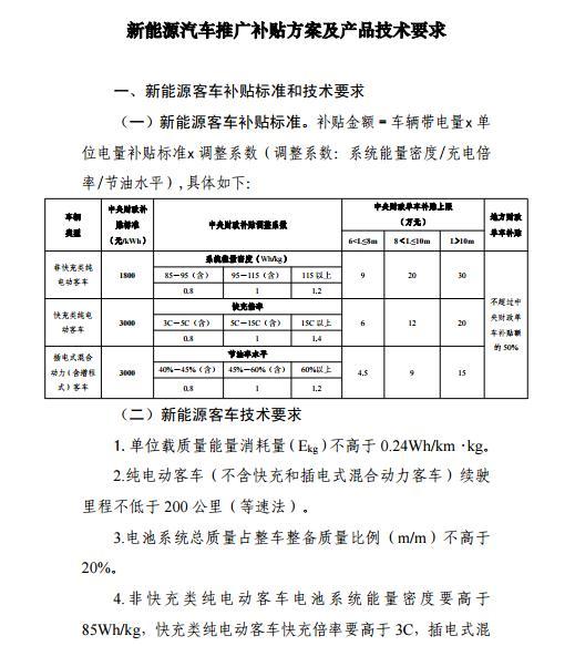 新能源客車補(bǔ)貼標(biāo)準(zhǔn)