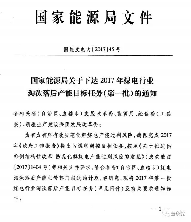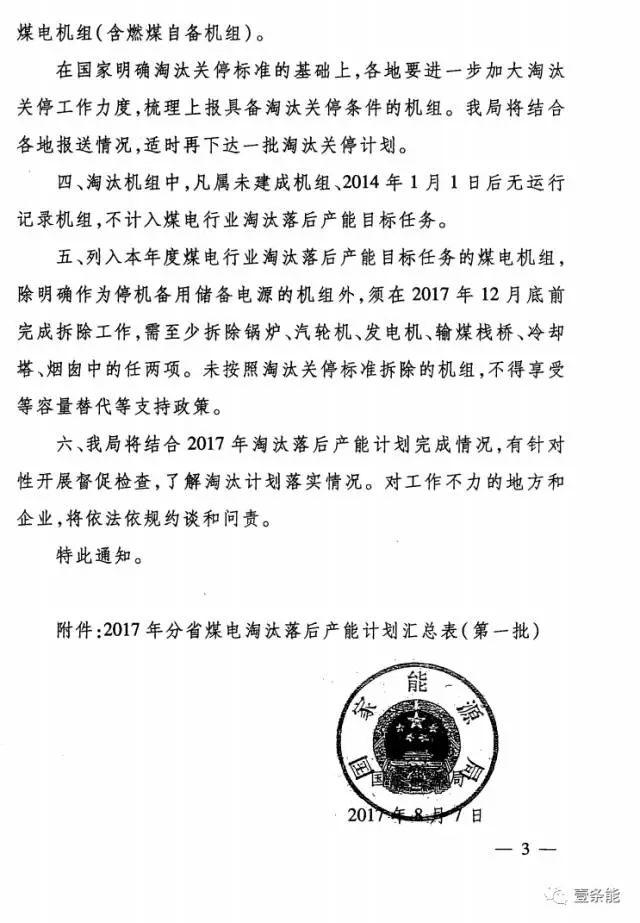 國家能源局公布首批2017年煤電行業(yè)淘汰落后產(chǎn)能目標任務