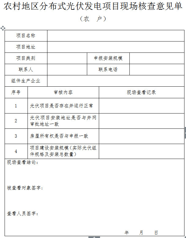 附件3:《農(nóng)村地區(qū)分布式光伏發(fā)電項目現(xiàn)場核查意見單(農(nóng)戶)》