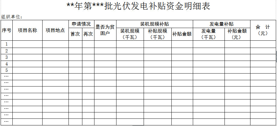 附件5:《**年第*批光伏發(fā)電補貼資金明細表》