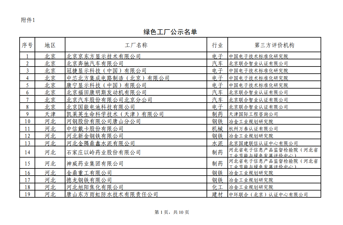 附件:1.綠色工廠公示名單