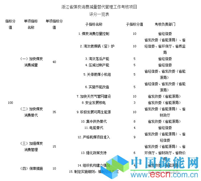 根據(jù)《浙江省煤炭消費(fèi)減量替代管理工作方案》要求,考核驗收內(nèi)容、分值及指標(biāo)設(shè)定如下: