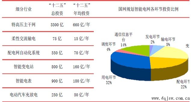 從投資比例來看,變電、配電和用電也是占比最大的環(huán)節(jié),“十二五”期間預計占整個智能化投資的比例分別為21%、22%和33%。