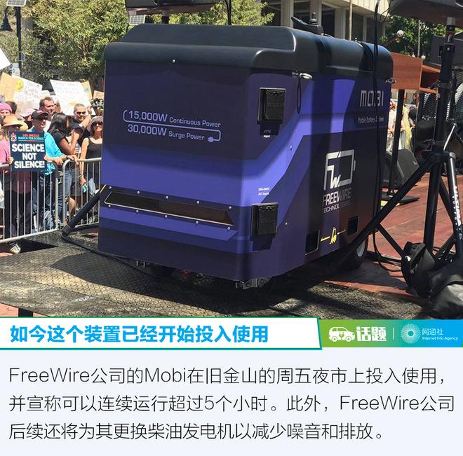 根據(jù)FreeWire公司的介紹,這個移動充電車已經(jīng)推出了“升級版”,儲能從最初的48千瓦時增加到80千瓦時,可以連續(xù)運行五個小時以上。今年4月20日,該移動充電站在舊金山地區(qū)的福特·梅森中心里進行了實際應用,當天正好是夜市。該項目在FreeWire公司看來是給了那些舊電池第二次生命,車主在使用時也是非常方便,可以通過平板電腦或手機操作,充電車位被占用的問題也得到了解決。