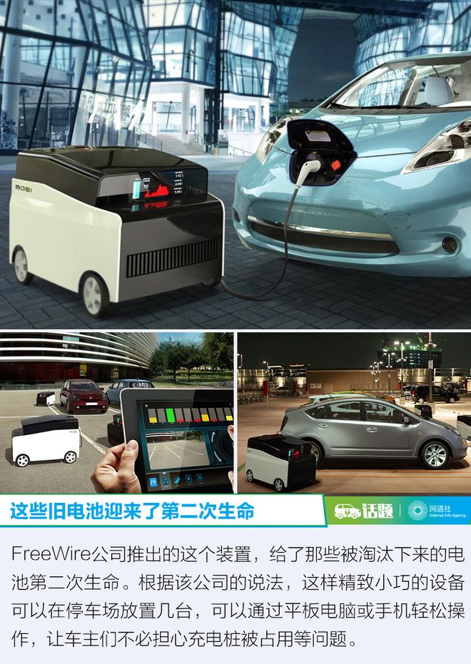 早在2015年,美國的FreeWire公司便推出了一款叫Mobi的電動汽車移動充電站。這個移動充電站很有意思,有點類似于我們所認知的移動充電車,像個大號的“充電寶”。該充電站的直流電來自于日產(chǎn)LEAF的舊電池模塊,后者由于是電動車的鼻祖,且銷量一直居高不下,所以淘汰下來的電池自然不會少。