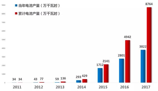 圖2:2011-2017年車載動(dòng)力電池產(chǎn)量