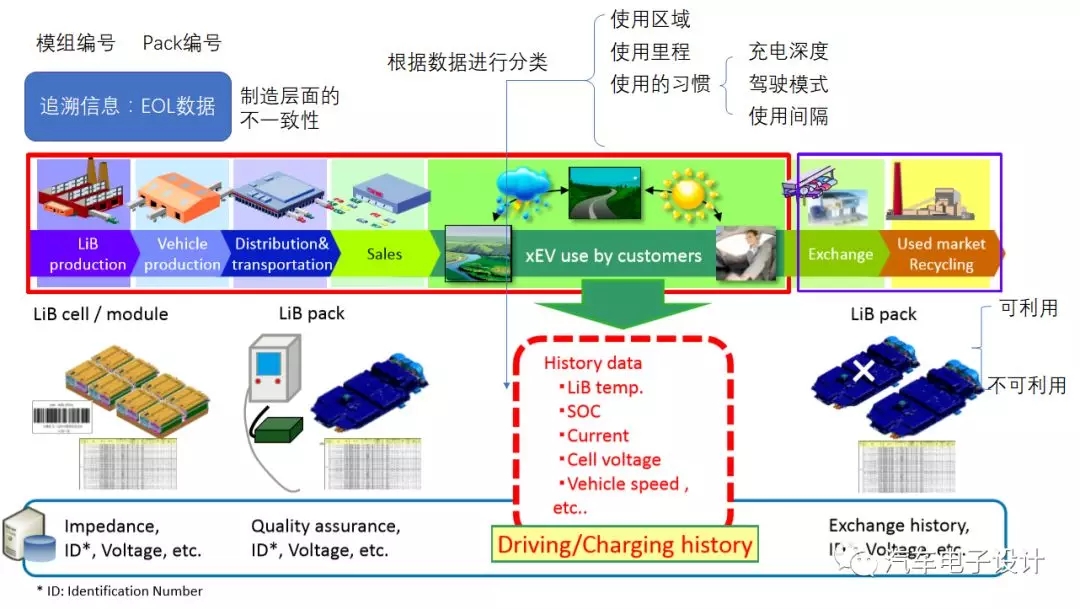 在單體=>模組過程中,我們會記錄相應的信息,獲取初始不一致性。而在車輛往私人市場使用過程中,由于系統(tǒng)性的分類,這里面產(chǎn)生了大量的差異的地方,也會對電池本身造成很大的差異。