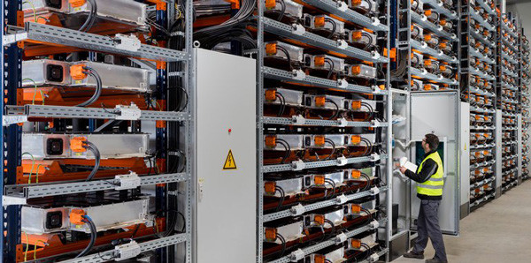 寶馬將i3替換下來(lái)的約700組電池集合到該儲(chǔ)能廠,形成一套電池系統(tǒng),可儲(chǔ)存電網(wǎng)低峰時(shí)段的電量,用電高峰或發(fā)電量低時(shí)再輸出。
