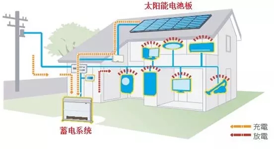 將報廢的鋰電池用來組建用于太陽能發(fā)電、風(fēng)力發(fā)電的蓄電系統(tǒng),是當(dāng)前比較熱門的應(yīng)用方向之一。在這方面,日本企業(yè)算是先行者,包括日產(chǎn)和住友合資的4R Energy、SHARP、NEC等企業(yè)在內(nèi)的多家日本公司,都在進(jìn)行這種蓄電系統(tǒng)的研發(fā)和應(yīng)用,有的主要面向電力公司,有的主要面向家庭。下圖即是蓄電系統(tǒng)應(yīng)用在家庭住宅的一個例子。
