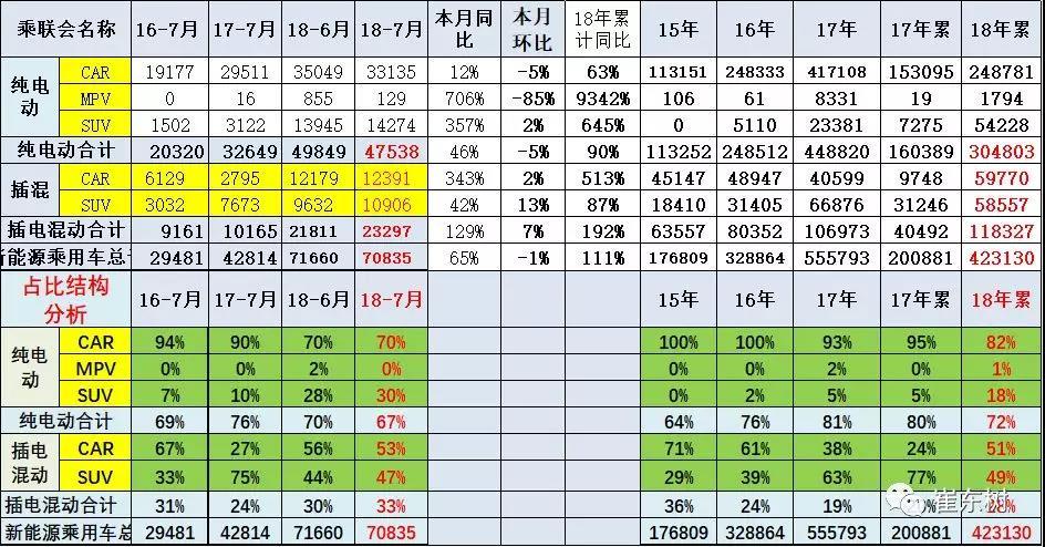 插混車型18年1-7月的很好,成為表現(xiàn)最強的動力類型。