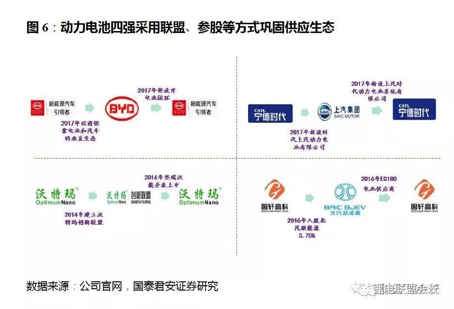 2)鋰電配套模式多,合縱連橫消除運輸半徑,降低成本。參股或合資,合縱連橫利益共贏。國軒高科2016年開始轉(zhuǎn)型三元,參股北汽新能源(2016年占股3.75%)取得EC180等車型供應(yīng)權(quán)。CATL除廣泛綁定乘用車和商用車客戶外,5月聯(lián)手上汽集團,新設(shè)動力電池公司和電池PACK公司,分別為時代上汽動力電池有限公司(CATL持股51%)與上汽時代動力電池系統(tǒng)有限公司(CATL持股49%)。通過明確的利益及分工劃分,深度綁定上汽。