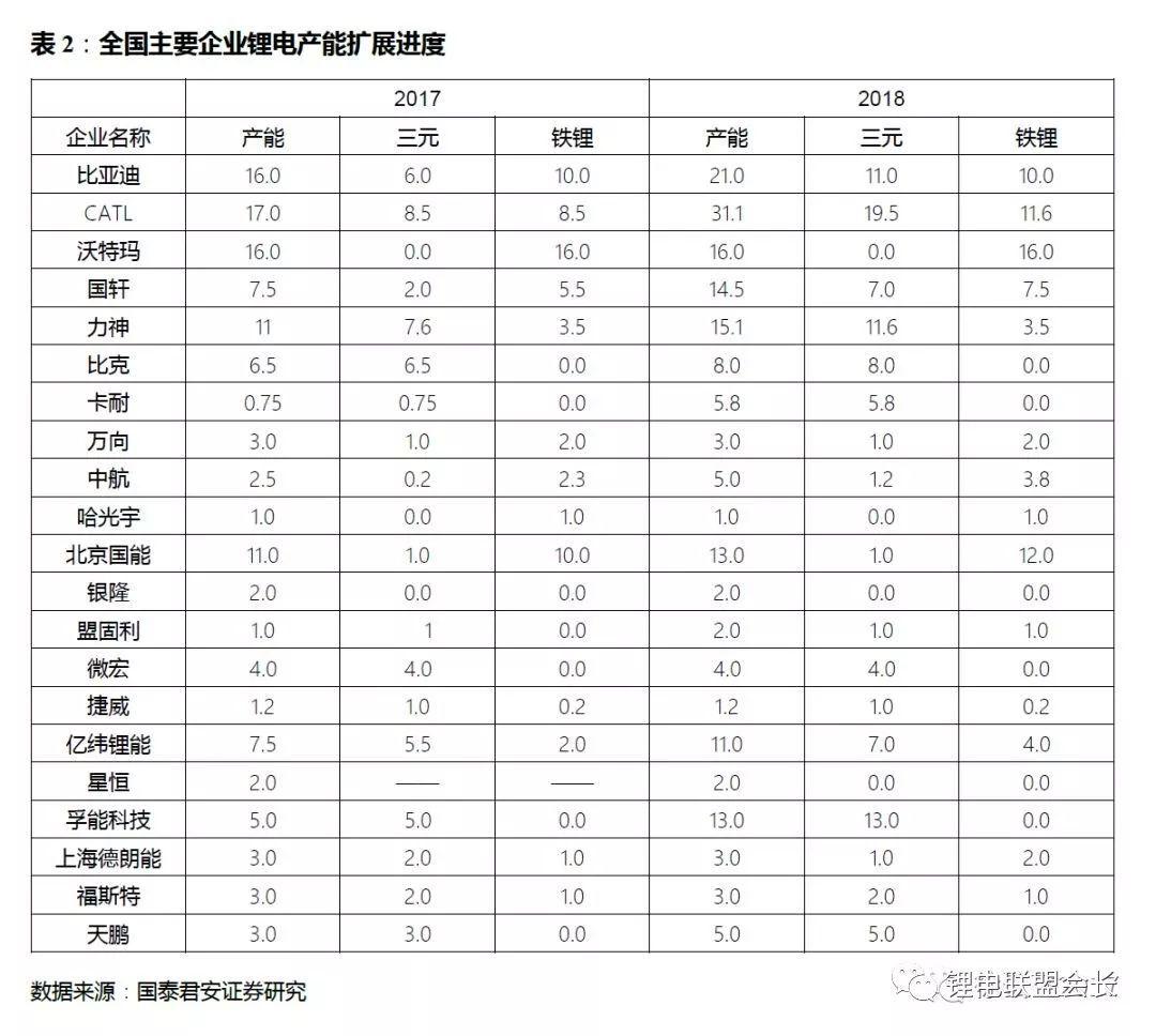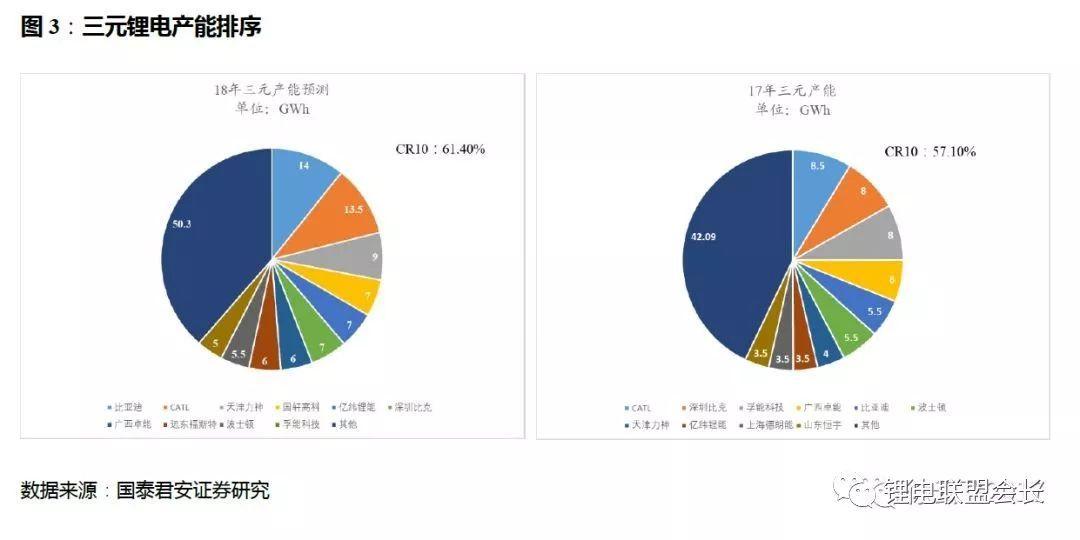 此外觀察頭部公司,比亞迪由于前期在三元鋰電發(fā)力不足,18年在三元方面擴張新增5GWh。行業(yè)龍頭CATL三元產(chǎn)能已將有8.5GWh提升至19.5GWh,新增產(chǎn)能達11GWh,已滿足眾多乘用車車企的配套規(guī)劃需求。