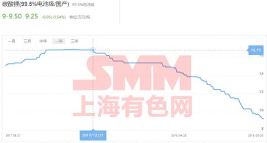 2月至3月的平穩(wěn)期,主因春節(jié)鉛鋰鹽廠備貨,價格平穩(wěn)過渡,而節(jié)后正極材料廠交易清淡,同時廠家對碳酸鋰價格后續(xù)走勢表示悲觀,所以即使各大鋰鹽供應廠積極營造“碳酸鋰價格走勢會漲”的態(tài)勢,碳酸鋰的價格依舊未能反彈,仍是橫盤兩月。但一進入四月,由于碳酸鋰的供應過剩,價格也應聲下跌。據(jù)調(diào)研得知,4月起持續(xù)下行的碳酸鋰價格,源于4月青海地區(qū)工業(yè)級碳酸鋰的供應過剩,工業(yè)級碳酸鋰拖累了電池級碳酸鋰的價格,同時加上沃特瑪事件,磷酸鐵鋰的生產(chǎn)十分低迷。持續(xù)累加的碳酸鋰庫存,加之二季度三元需求的疲軟,雖然期間四川某上市鋰冶煉廠停產(chǎn)檢修,但是也無法阻擋碳酸鋰持續(xù)下跌的走勢。為了更好地理解碳酸鋰的發(fā)跡史與落日史,整理了近兩年的碳酸鋰走勢并給出了原因詳解。