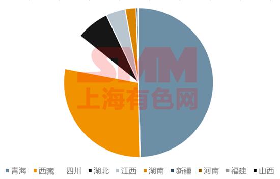 我國各省鋰資源儲量分布: