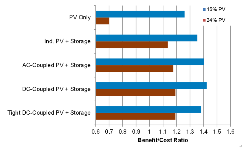 美國(guó)國(guó)家可再生能源實(shí)驗(yàn)室(NREL)的分析發(fā)現(xiàn),獨(dú)立系統(tǒng)的成本最高,在大多數(shù)情況下,其效益/成本比率低于耦合系統(tǒng),效率更高,成本更低。但是直流耦合系統(tǒng)的分析變得更加復(fù)雜。