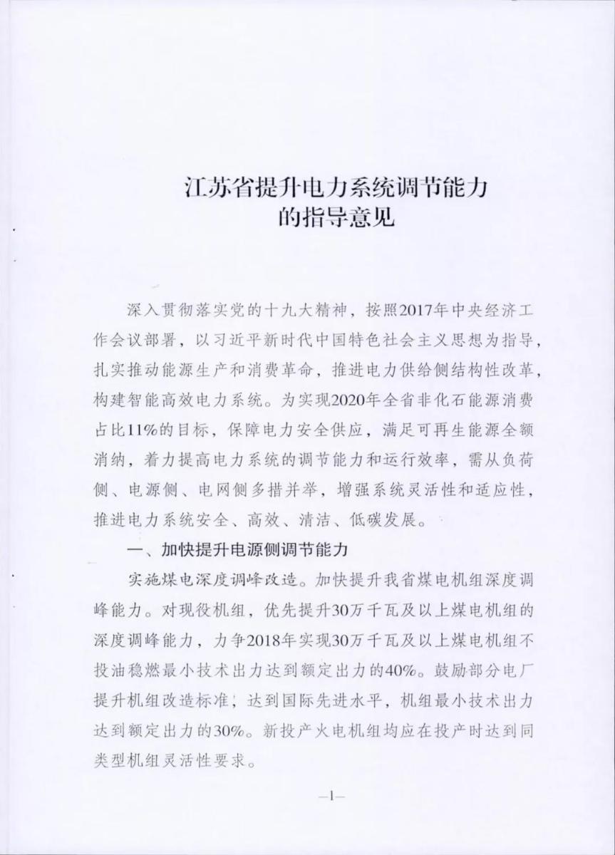 中國儲能網(wǎng)訊:近日,國家能源局江蘇監(jiān)管辦聯(lián)合江蘇省相關(guān)部門印發(fā)了《江蘇省提升電力系統(tǒng)調(diào)節(jié)能力的指導(dǎo)意見》,旨在實(shí)現(xiàn)2020年全省非化石能源消費(fèi)占比11%的目標(biāo),保障電力安全供應(yīng),滿足可再生能源全額消納,著力提高電力系統(tǒng)調(diào)節(jié)能力和運(yùn)行效率,需從負(fù)荷側(cè)電源側(cè)、電網(wǎng)側(cè)多措并舉,增強(qiáng)系統(tǒng)靈活性與適應(yīng)性,推進(jìn)電力系統(tǒng)安全高效清潔低碳發(fā)展。