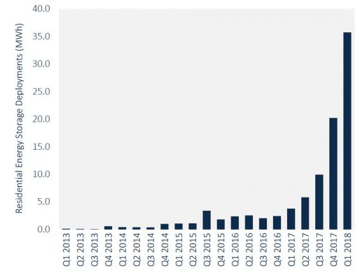 ?2018年第一季度部署了35.8兆瓦時(shí)的住宅儲(chǔ)能系統(tǒng)。