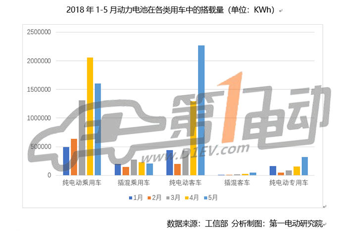 根據(jù)第一電動研究院的統(tǒng)計(jì)測算,2018年5月國內(nèi)新能源汽車市場動力電池裝機(jī)量為4.442GWh,比上月增長18.26%,同比增長207.8%。