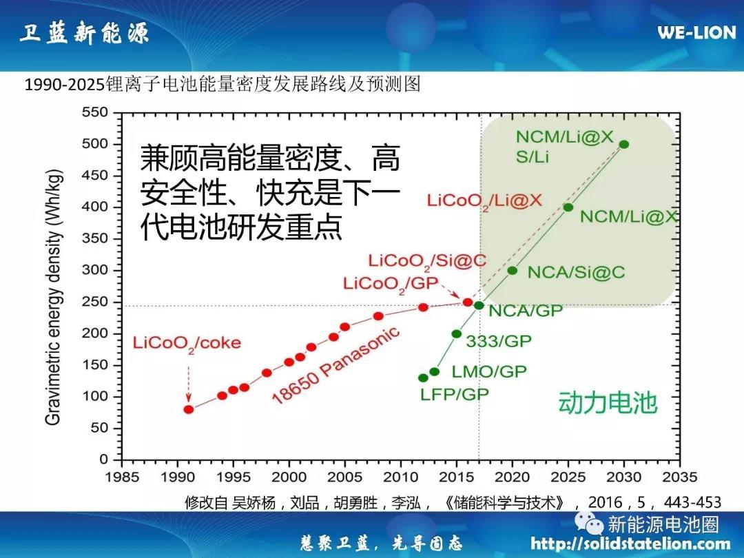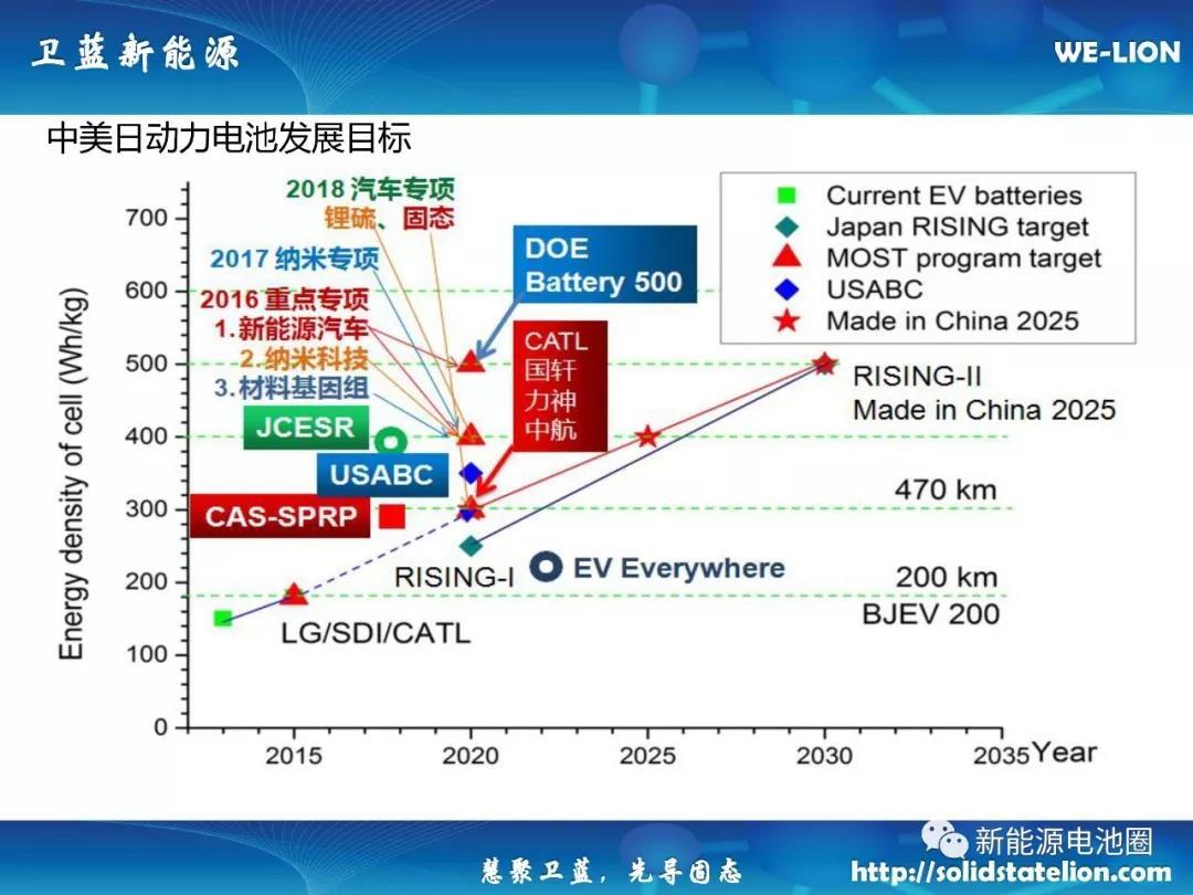 中國儲能網(wǎng)訊:按照我國《節(jié)能與新能源汽車技術(shù)路線圖》,到2020年,純電動汽車動力電池的能量密度目標(biāo)為300Wh/kg,2025 年目標(biāo)為 400Wh/kg,2030年目標(biāo)為 500Wh/kg。