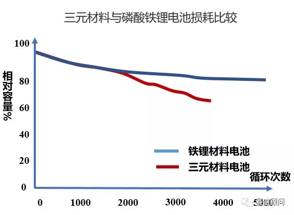 電池使用一段時間后都會有所損耗,從單體電池來看,三元電池?fù)p耗更快,磷酸鐵鋰電池在使用2000次后在很長的一段時間內(nèi)都相對穩(wěn)定,20000次后都能夠保持65%以上的電池容量。由此,磷酸鐵鋰電池具有更廣闊的梯次利用市場。