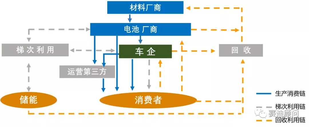 由材料廠商到電池廠商、車企到消費者的傳統(tǒng)產(chǎn)業(yè)鏈,由于商業(yè)模式的創(chuàng)新,電池廠商、車企和運營第三方都可接觸到消費者,也均可實現(xiàn)對電池使用最終環(huán)節(jié)的運營。