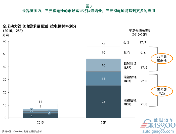 從技術(shù)路線分析出發(fā),三元鋰電池的市場需求將快速增長,出貨量也會迅猛提升。