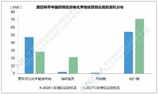 從應用分布上看,新增投運項目全部應用在集中式可再生能源并網(wǎng)、輔助服務和用戶側(cè)領域。其中,用戶側(cè)領域的功率規(guī)模最大,超過70MW,輔助服務領域的同比增速最大,接近1000%。