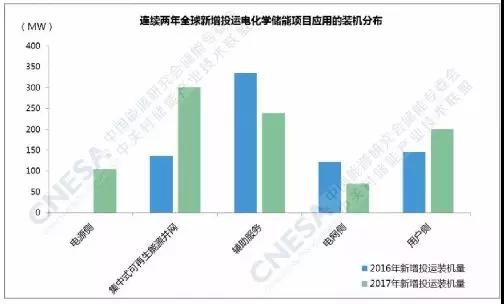 據(jù)中關村儲能產(chǎn)業(yè)技術聯(lián)盟(CNESA)項目庫的不完全統(tǒng)計,截至2017年底,中國已投運儲能項目累計裝機規(guī)模為28.9GW。其中,抽水蓄能的累計裝機占比最大,接近99%,電化學儲能項目的累計裝機規(guī)模緊隨其后,為389.8MW,占比為1.3%,較上一年增長0.2個百分點。2017年,中國新增投運電化學儲能項目的功率規(guī)模為121MW,同比增速超過15%。