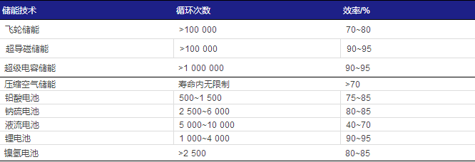 風(fēng)電和光伏發(fā)電的出力波動(dòng)在任何時(shí)候都可能發(fā)生,在目前的新能源發(fā)電預(yù)測(cè)水平下,難以實(shí)現(xiàn)分鐘級(jí)甚至秒級(jí)的風(fēng)、光發(fā)電出力精確預(yù)測(cè)。因此,需要能夠快速響應(yīng)的儲(chǔ)能技術(shù)。表1羅列了幾種典型的儲(chǔ)能技術(shù)。