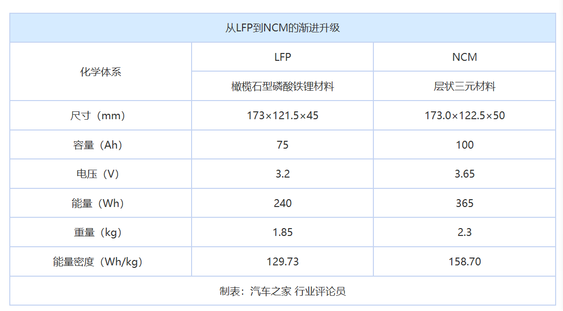 從實際應用上來說,比亞迪是在電池尺寸規(guī)格大體不變的情況下,通過調整化學體系實現(xiàn)容量上升。