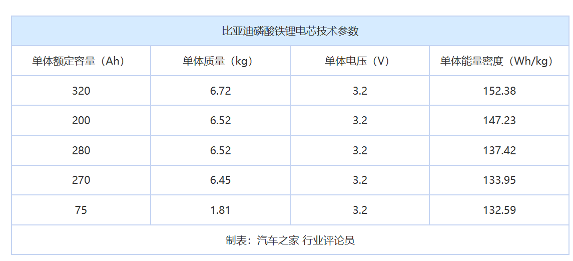 比亞迪在磷酸鐵鋰的技術路線上堅守比較久,從而也暴露了其在電池材料體系側重點切換較慢的一個弱點。由于之前執(zhí)著于用磷酸鐵鋰電芯,比亞迪在補貼政策要求的能耗和能量密度上都吃了不少虧。如下表所示,比亞迪的主要思路是通過做大電芯來實現(xiàn)單體的更高能量密度,所以做到了300Ah這樣的規(guī)格;而在乘用車上采用75Ah電芯并聯(lián)的方式,總體的效率并不高。