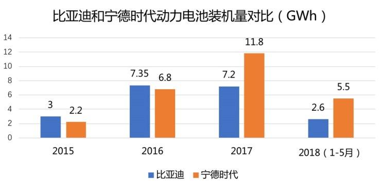 從目前中國動力電池市場的占比情況來看,已經(jīng)形成了寧德時代和比亞迪的雙龍頭格局??紤]到企業(yè)的整體規(guī)模和后續(xù)潛力,如果比亞迪的動力電池業(yè)務局限在集團內供,與寧德時代的規(guī)模差距將會越拉越大。過去比亞迪曾牢牢占據(jù)國內動力電池榜首,但從2017年開始被寧德時代超越。2018年1-5月,比亞迪動力電池裝機量為2.55GWh,而寧德時代已經(jīng)達到5.46GWh。往后隨著新能源汽車補貼的進一步退坡,電池成本和整車的周轉資金對比亞迪來說是個巨大的挑戰(zhàn),從多個層面考慮,比亞迪動力電池業(yè)務獨立和開放也是不得不做的事情。