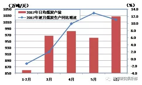 圖1 煤炭日均產(chǎn)量及增速(2017年1月至6月)