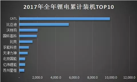 中國(guó)化學(xué)與物理電源行業(yè)協(xié)會(huì)秘書長(zhǎng)劉彥龍?jiān)诮盏囊粓?chǎng)論壇中指出,2017年前5家企業(yè)動(dòng)力電池配套量占六成以上;前20家企業(yè)配套量占比87%。而根據(jù)該協(xié)會(huì)發(fā)布的2017年全年鋰電累計(jì)裝機(jī)排名(如上圖),企業(yè)鋰電配套占比與以上情況也大體一致。此外,中汽研相關(guān)數(shù)據(jù)同樣顯示,2017年前2家動(dòng)力電池配套量占該年度總配套量的45%左右,前10家企業(yè)配套量占比近70%。由此可見,國(guó)內(nèi)動(dòng)力電池行業(yè)集中度正在進(jìn)一步提升。