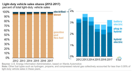 盡管是全美最大的電動汽車市場,加利福尼亞要實(shí)現(xiàn)這一目仍然有很長的路要走。截至2017年10月,該州共有337,482輛零排放車輛,占該州車輛總數(shù)的4.5%。