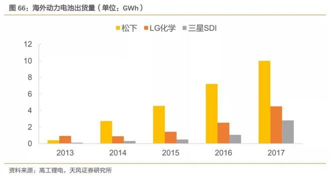 截止2017年底,海外三家電池廠商出貨量較上年均有增長(zhǎng)。