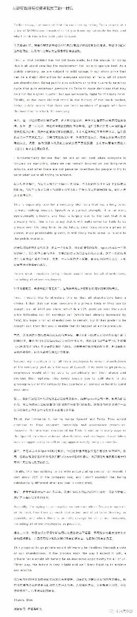 附:特斯拉公司官方發(fā)布的《馬斯克致所有投資者和員工的一封信》