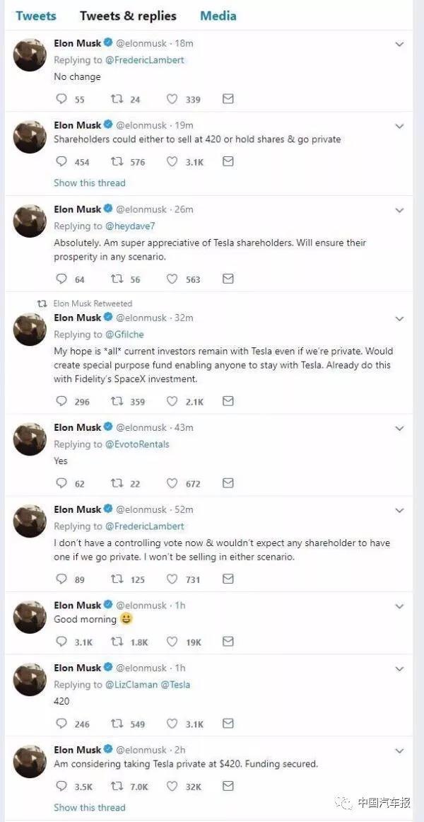 “通過將特斯拉私有化,馬斯克可以擁有更多自主權,更有利于企業(yè)布局和管理。上海交通大學教授殷承良對《中國汽車報》記者表示,“上市公司股東追求的就是利益,而且大多是眼前利益,很可能造成企業(yè)短視。企業(yè)經營和軍隊作戰(zhàn)一樣,都需要制定戰(zhàn)略戰(zhàn)術?!?