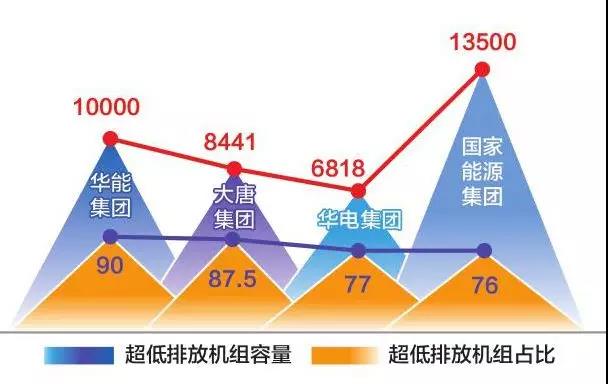 作為改造主力軍,新五大發(fā)電集團認真落實大氣污染防治要求,全力推進超低排放提速擴圍,節(jié)能環(huán)保工作實現(xiàn)質的飛躍。其中,國家能源集團完成超低排放改造機組容量最多,為13500萬千瓦,占現(xiàn)役煤電機組容量76%。華能集團超低排放機組占比最高,超過90%,共計10000萬千瓦,超前國家進度計劃要求。大唐集團累計完成超低排放機組改造達到202臺,共計8441萬千瓦,占在役燃煤機組容量的87.5%,高出中央發(fā)電企業(yè)平均值6個百分點。華電集團累計170臺6818萬千瓦煤電機組完成改造,容量占比達到77%,東部地區(qū)煤電機組已全部實現(xiàn)超低排放。