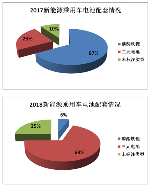 2018年1月16日,工業(yè)和信息化部公示的首批申報(bào)《道路機(jī)動(dòng)車輛生產(chǎn)企業(yè)及產(chǎn)品公告》新產(chǎn)品,這也是今年的首批入圍名單。在2018年首批公示的36款新能源乘用車配套電池類型中,三元鋰電池25款,占比達(dá)69%,相比2017年增加了46%。