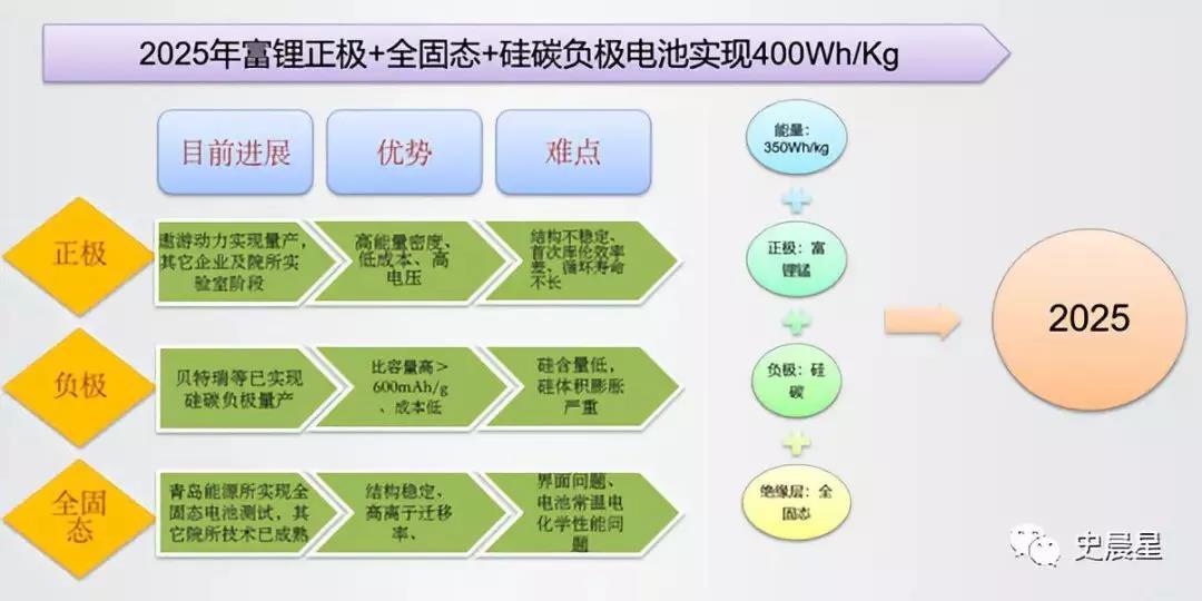 2.2025年富鋰正極+全固態(tài)電解質+硅碳/鋰金屬負極電池實現(xiàn)400Wh/Kg
