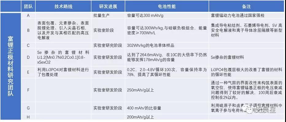富鋰材料經(jīng)過多年的研究,人們對于其電化學反應機理認識逐漸深入,通過材料結構調整、元素摻雜和表面包覆等手段,顯著改善了富鋰材料的結構和表面穩(wěn)定性,配合活化制度的研究,目前富鋰材料循環(huán)穩(wěn)定性和倍率性能都已經(jīng)得到極大的提升,預計2025年開始規(guī)模化應用。