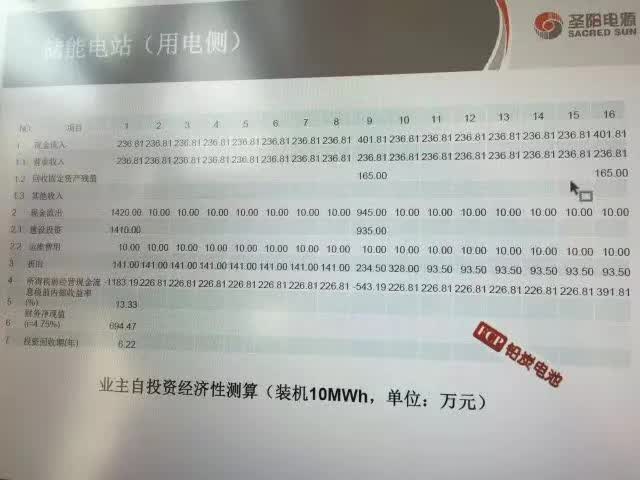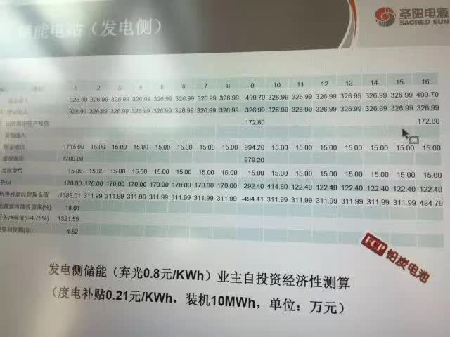 1MWH儲(chǔ)能=200萬(wàn)元投資=33萬(wàn)度/年儲(chǔ)能電力=282噸二氧化碳減排=26.4萬(wàn)元電費(fèi)收入+若干補(bǔ)貼收入=10年穩(wěn)定的IRR