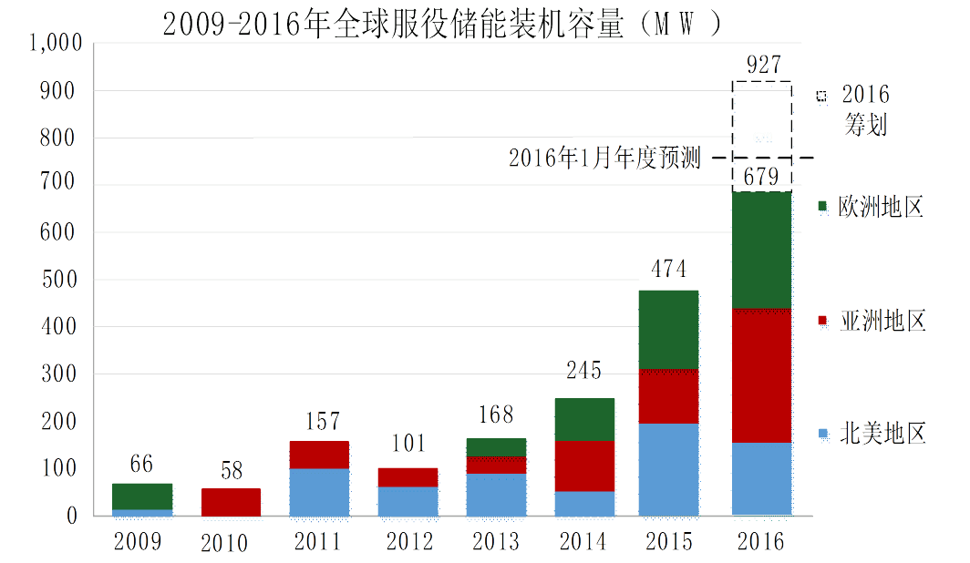 儲能雖然不是能源行業(yè)的主角,但它是發(fā)展清潔能源和智慧能源不可或缺的重要配角,“潔能+儲能+智能”是未來能源互聯(lián)網發(fā)展的重要方向。2015年至2016年世界儲能裝機容量得到快速發(fā)展(圖1)。