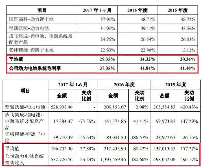 與同行業(yè)上市公司收入和毛利率相比,2015 年、2016 年和 2017年 1-6 月,寧德動力電池系統(tǒng)銷售收入分別同比增長 596.17%、180.60%和23.23%,整體高于同行業(yè)上市公司平均水平,動力電池系統(tǒng)毛利率略高于同行業(yè)平均水平。