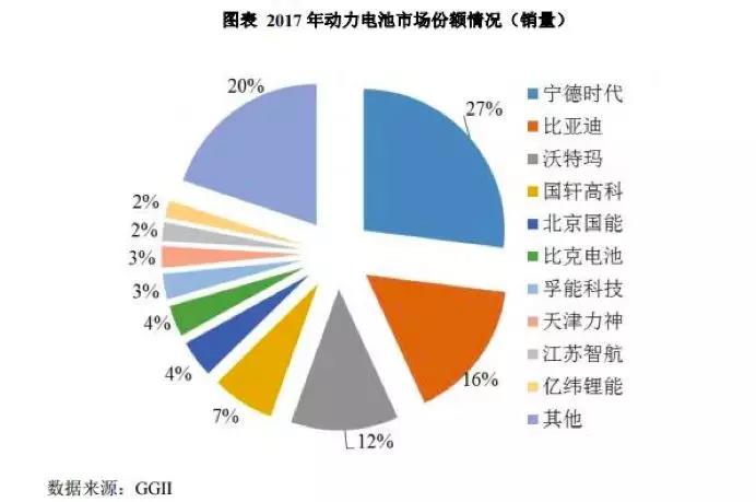 從銷量來看,2015 年、2016 年和 2017年,寧德時代動力電池系統(tǒng)銷量分別為 2.19GWh、6.80GWh 和 11.84GWh,根據(jù)高工產(chǎn)研鋰電研究所GGII 統(tǒng)計,公司動力電池系統(tǒng)銷量連續(xù)三年在全球動力電池企業(yè)中排名前三位,2017年銷量排名全球第一,超越老牌電池巨頭松下。而在中國市場上,去年寧德所占市場份額為27%,約為三分之一。