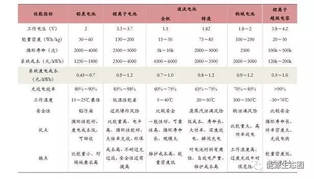 (主流儲(chǔ)能電池性能指標(biāo)比較 )
