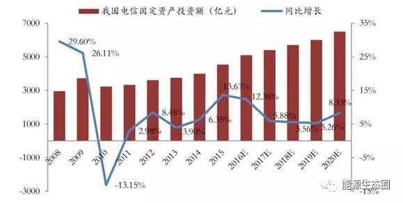 受益于 3G、4G 網(wǎng)絡(luò)建設(shè)的刺激因素下,電信固定資產(chǎn)投資 規(guī)模增速明顯上升,未來在 5G 建設(shè)的帶動(dòng)下將繼續(xù)保持平穩(wěn)增長。按一般通信基站的配置要求,后備電源需求大約 占總投資的 2%~3%,預(yù)計(jì)“十三五”期間后備電源市場(chǎng)規(guī)模有望超過 500 億元,一方面通過改造后備電源系統(tǒng)增 加其儲(chǔ)能功能,盤活存量市場(chǎng),另一方面通過設(shè)計(jì)一體化集成方案,開拓新增市場(chǎng),更大程度地為客戶實(shí)現(xiàn)節(jié)能套利。