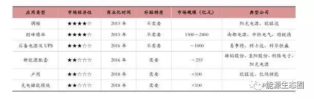 目前最具市場(chǎng)經(jīng)濟(jì)性的是傳統(tǒng)電網(wǎng)削峰填谷,已經(jīng)可以實(shí)現(xiàn)無補(bǔ)貼的商業(yè)化推廣,若“十 三五”期間在大型工業(yè)城市投資儲(chǔ)能項(xiàng)目,則市場(chǎng)規(guī)模有望達(dá)到 1500~2400 億元,此外,未來若在大型工業(yè)省份全面 推廣儲(chǔ)能,則市場(chǎng)規(guī)模更可觀;后備電源及 UPS 儲(chǔ)能也不需要補(bǔ)貼,市場(chǎng)規(guī)模約為 1000 億元;新能源發(fā)電可按一定 比例配套儲(chǔ)能,市場(chǎng)規(guī)模約為 255 億元,但尚需補(bǔ)貼;另外,戶用儲(chǔ)能和充儲(chǔ)放一體化充電站等市場(chǎng)規(guī)模不到 100 億 元,且需要補(bǔ)貼才能推廣。綜上所述,傳統(tǒng)電網(wǎng)削峰填谷將是未來五年最大的儲(chǔ)能市場(chǎng)。