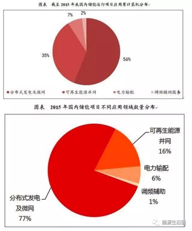 目前,國內(nèi)的儲(chǔ)能市場(chǎng)主要分為兩類,一類是用戶端分布式發(fā)電及微電網(wǎng)中儲(chǔ)能的應(yīng)用,占比大約為56%,另一類是集中式風(fēng)光電站(可再生能源并網(wǎng))儲(chǔ)能應(yīng)用,占比約為35%,目前兩者累計(jì)裝機(jī)規(guī)模已超過國內(nèi)市場(chǎng)的90%,電力輸配和調(diào)頻輔助服務(wù)占到9%左右的市場(chǎng)份額。